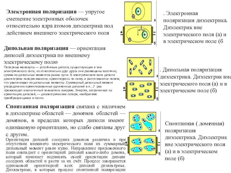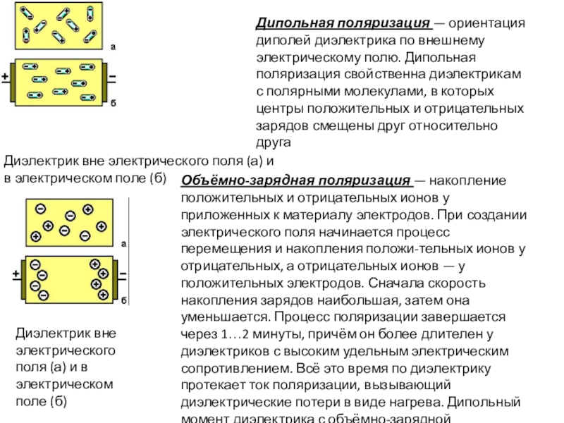 поляризация — ориентация диполей диэлектрика по внешнему электрическому полю. Дипольная