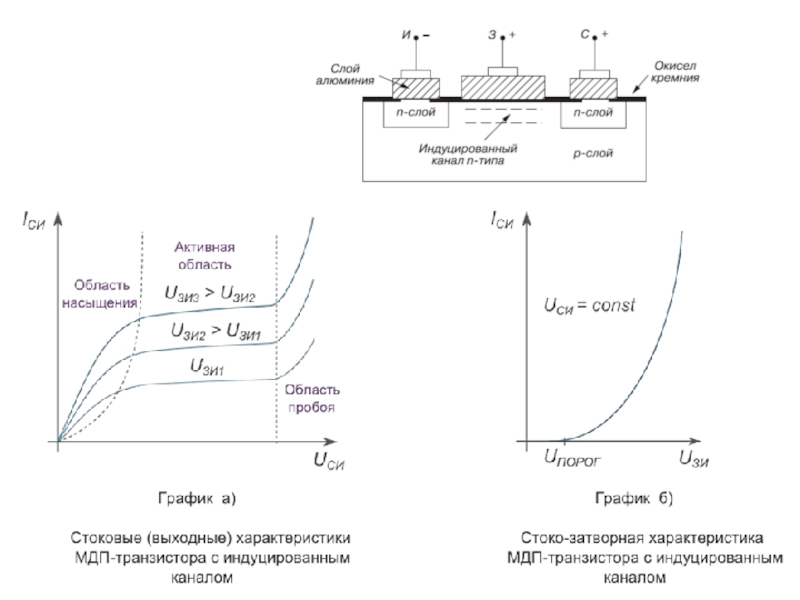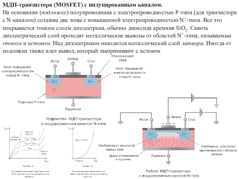 Слайд 61МДП-транзистора (MOSFET) с индуцированным каналом.