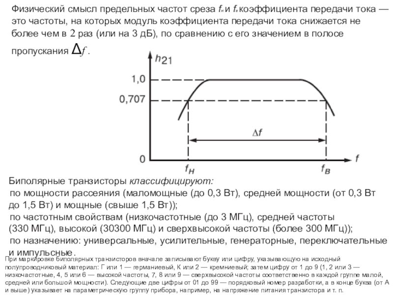 это частоты, на которых модуль коэффициента передачи тока снижается