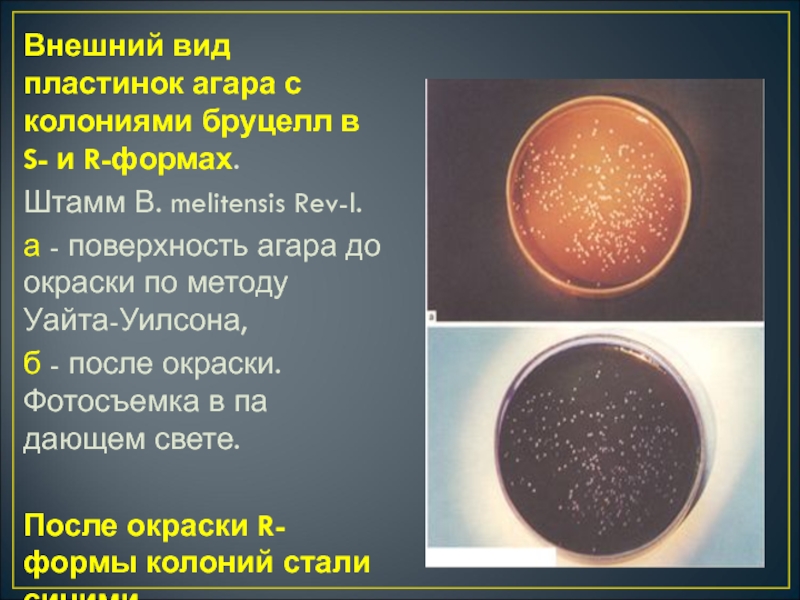 Слайд 20Внешний вид пластинок агара с колониями бруцелл в S- и