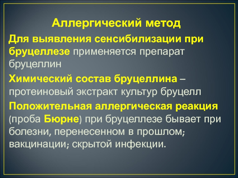 сенсибилизированного бруцеллезным антигеном, отвечать специфической местной реакцией на внутрикожное введение