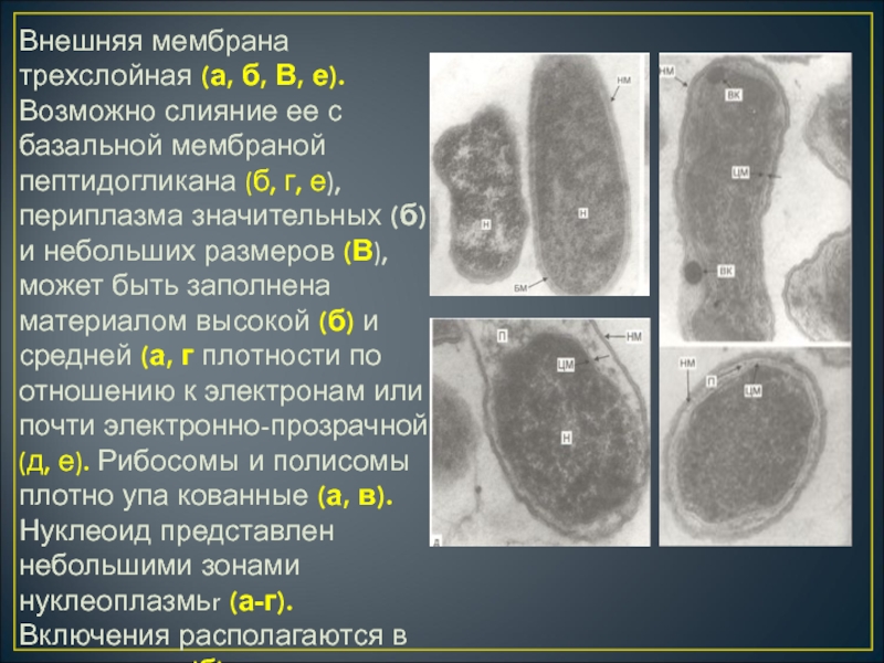 Слайд 11Внешняя мембрана трехслойная (а, б, В, е). Возможно слияние ее