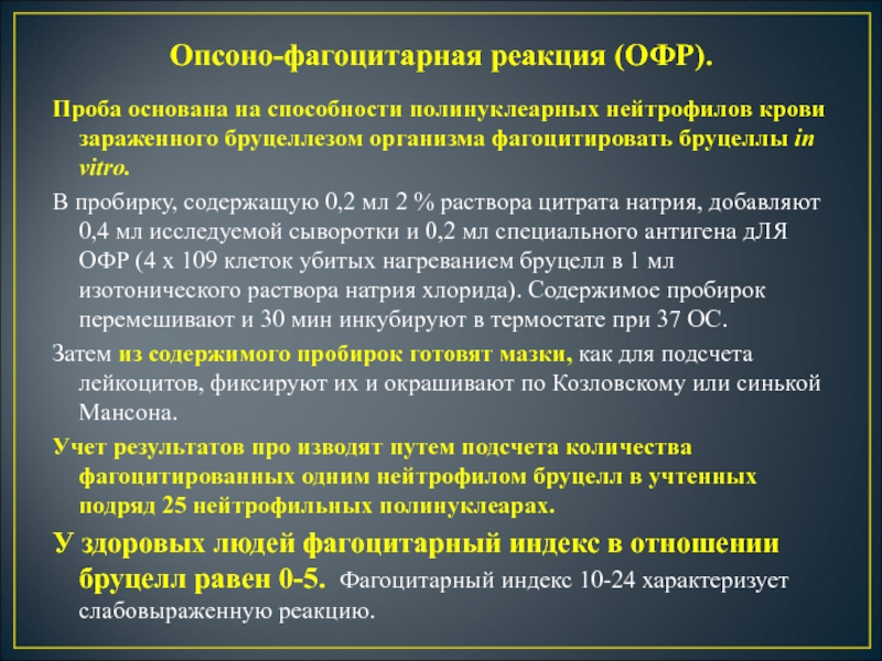 Слайд 55Опсоно-фагоцитарная реакция (ОФР).