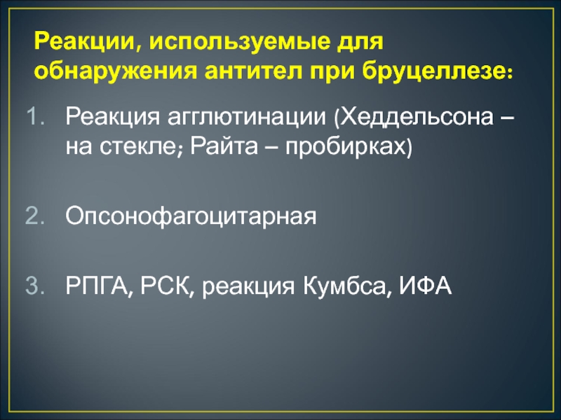 Аг в реакциях Райта и Хеддльсона –единый бруцеллезный диагностикум
