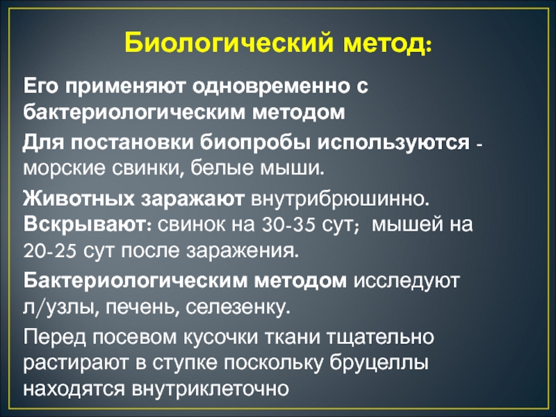 Бактериологическим методом исследуют л/узлы, печень, селезенку.