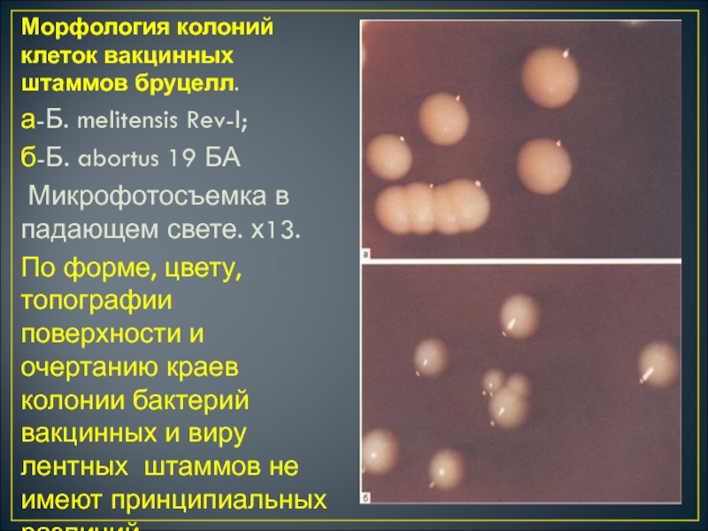 Слайд 19Морфология колоний клеток вакцинных штаммов бруцелл.