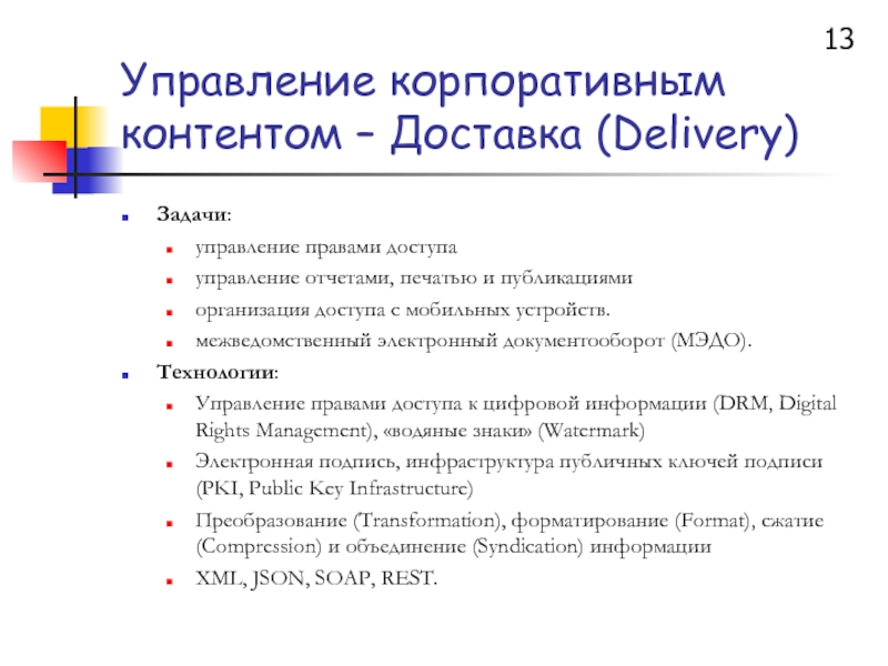Слайд 13Управление корпоративным контентом – Доставка (Delivery)