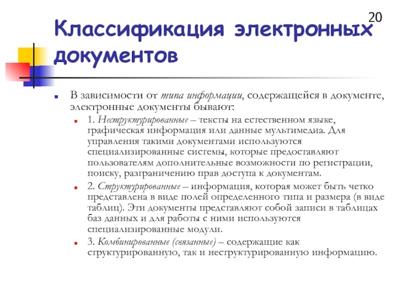 Слайд 20Классификация электронных документов