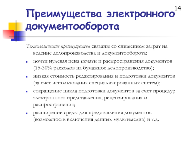 Слайд 14Преимущества электронного документооборота