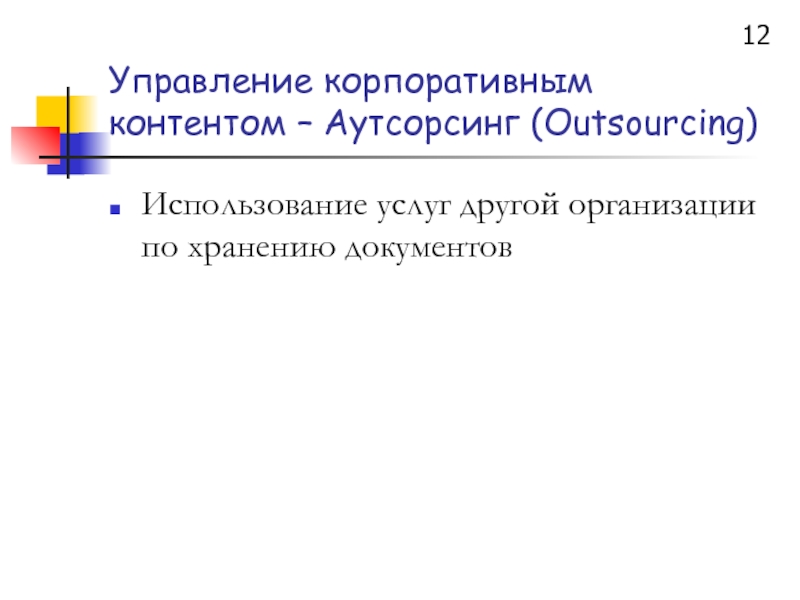 Слайд 12Управление корпоративным контентом – Аутсорсинг (Outsourcing)