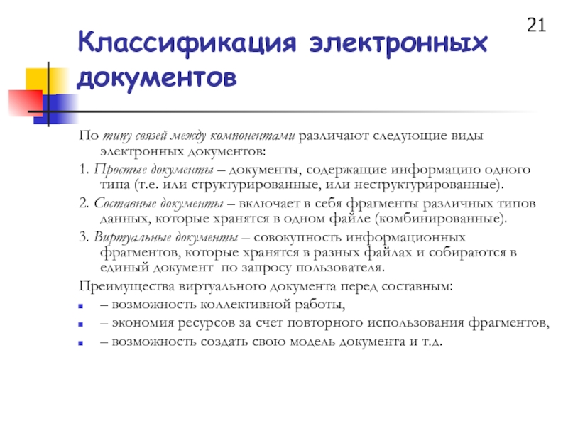 Слайд 21Классификация электронных документов
