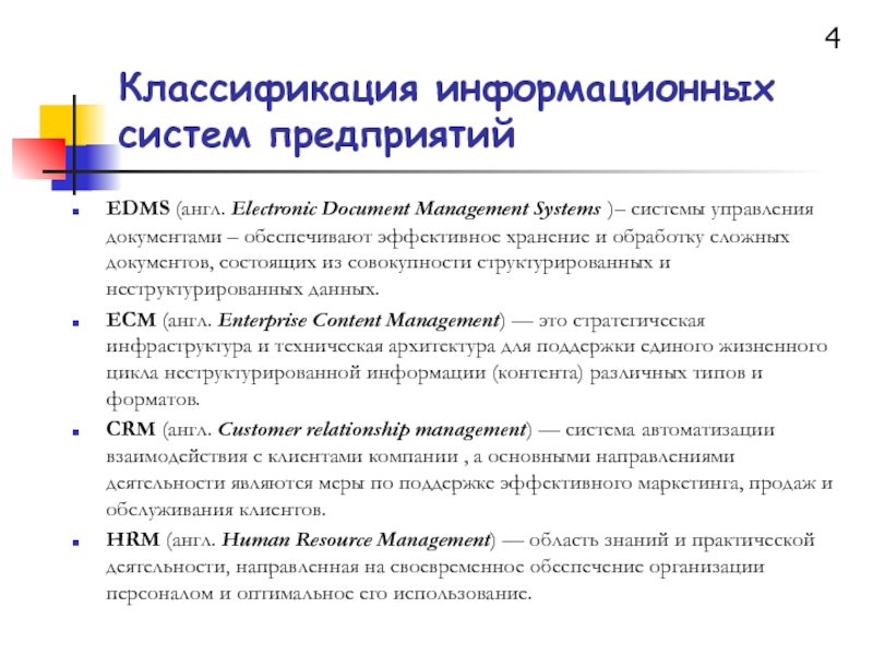 Слайд 4Классификация информационных систем предприятий
