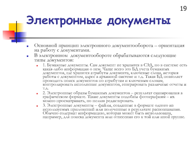 Основной принцип электронного документооборота – ориентация на работу с