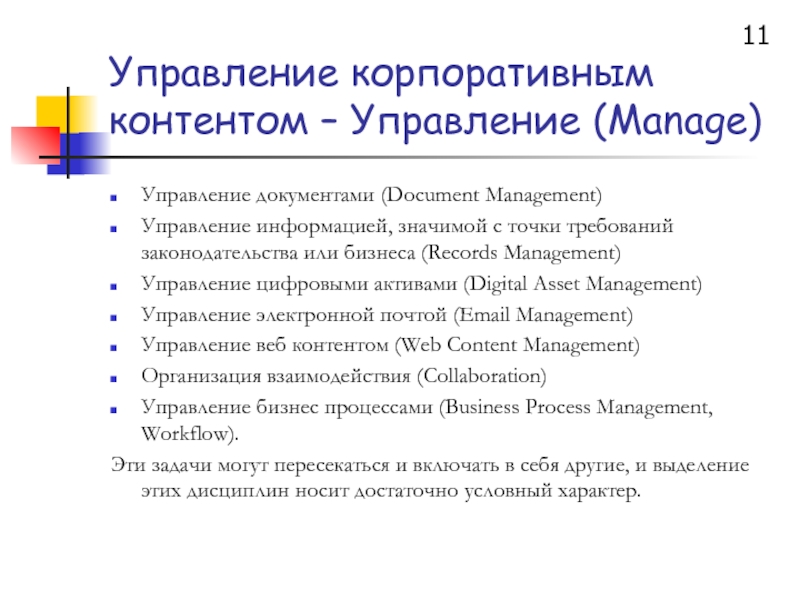 Слайд 11Управление корпоративным контентом – Управление (Manage)
