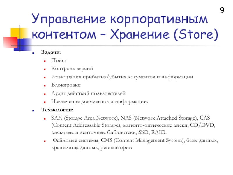 Слайд 9Управление корпоративным контентом – Хранение (Store)