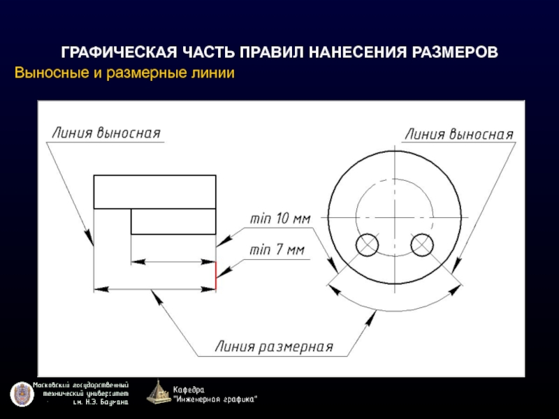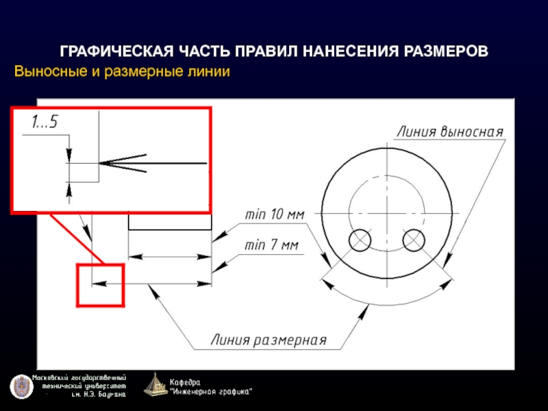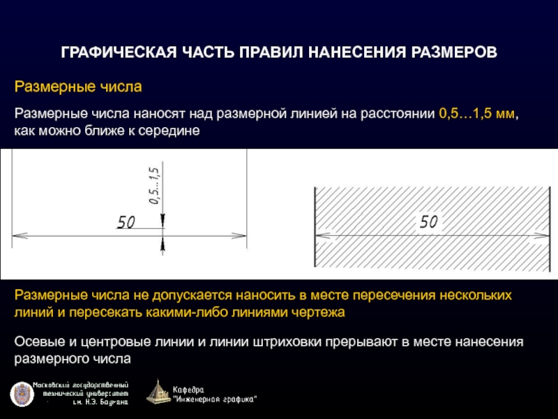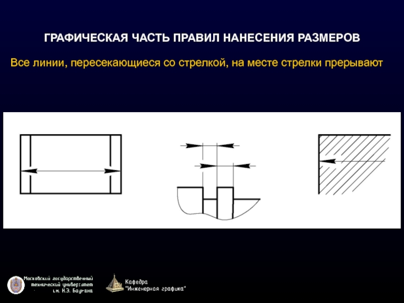 Осевые и центровые линии и линии штриховки прерывают в месте нанесения