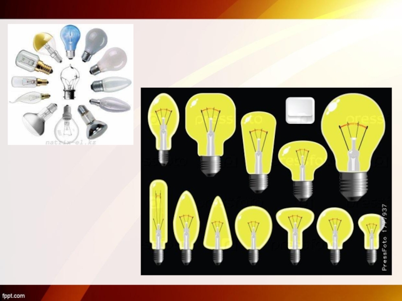 Слайд 6Промышленность выпускает лампы накаливания разных форм и размеров. Мощность ламп