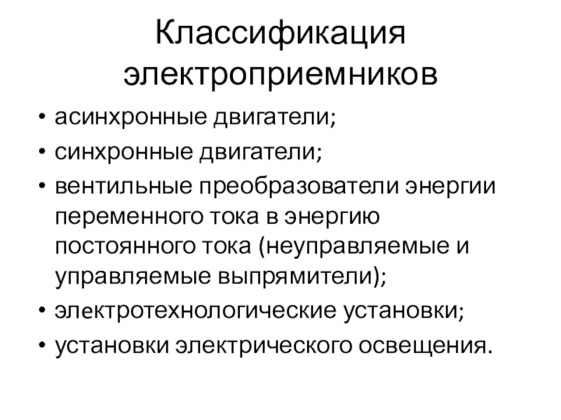 Приемником электроэнергии называют устройство (аппарат, агрегат, механизм), в котором происходит преобразование электрической энергии в другой вид энергии для ее использования