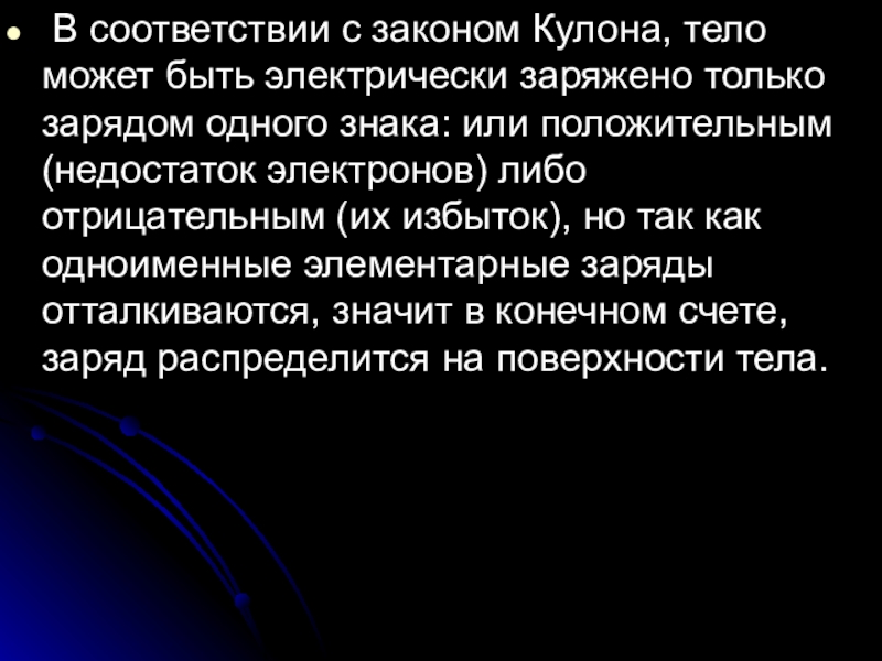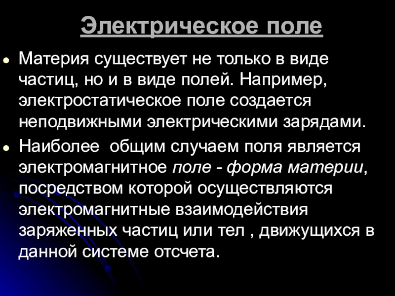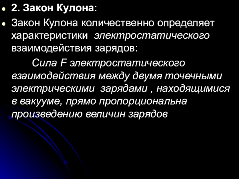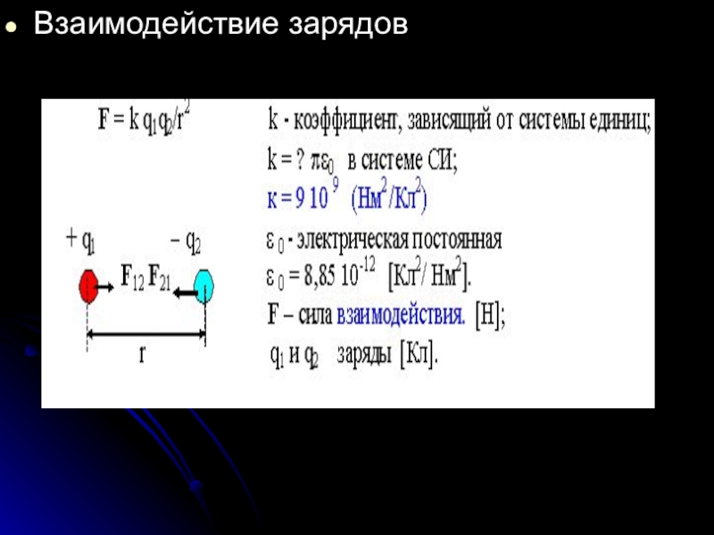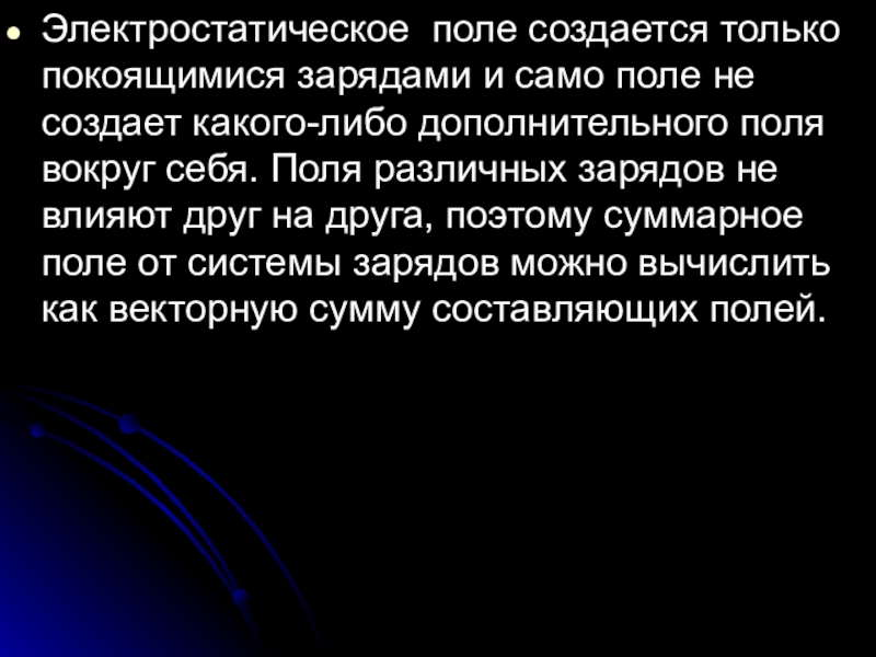 Электростатика изучает взаимодействие неподвижных точечных зарядов. Для таких