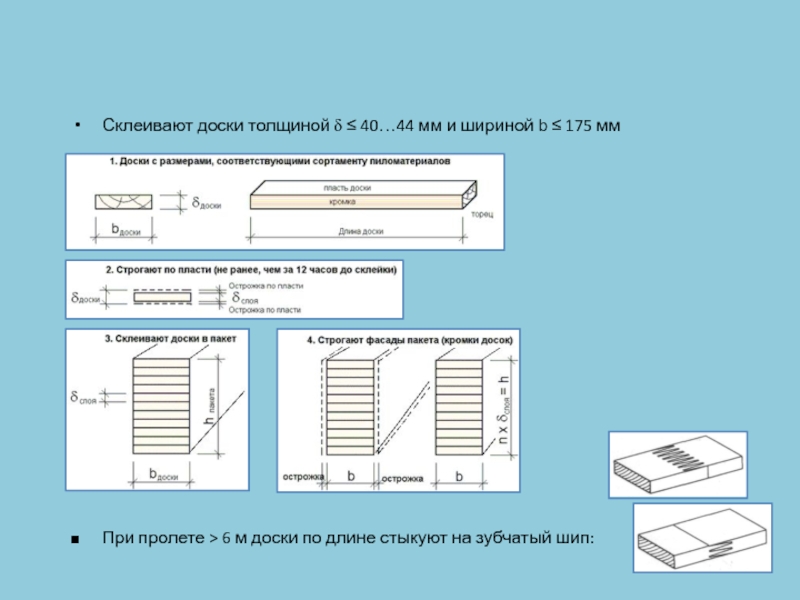 Слайд 16Склеивают доски толщиной d  40…44 мм и шириной b