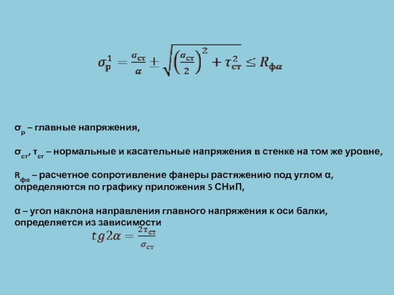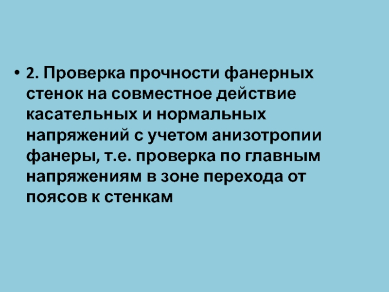 Слайд 542. Проверка прочности фанерных стенок на совместное действие касательных и
