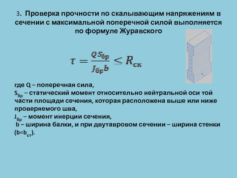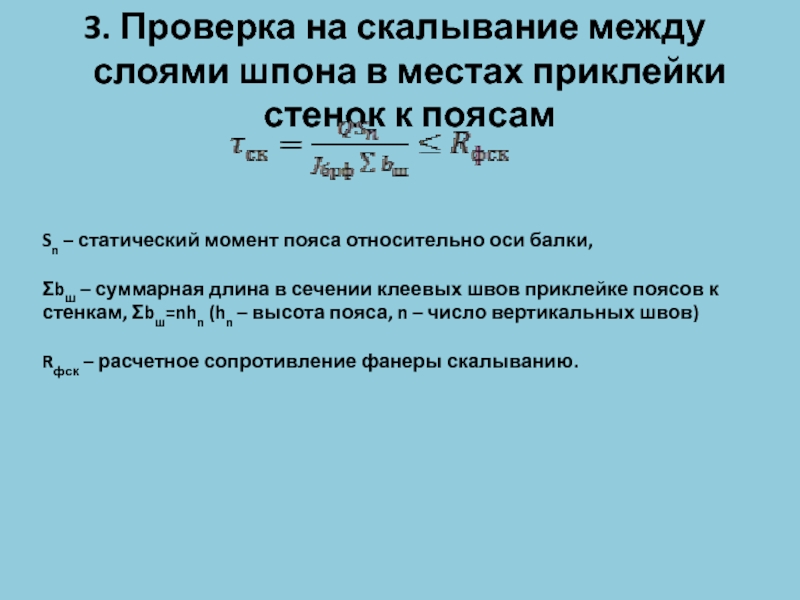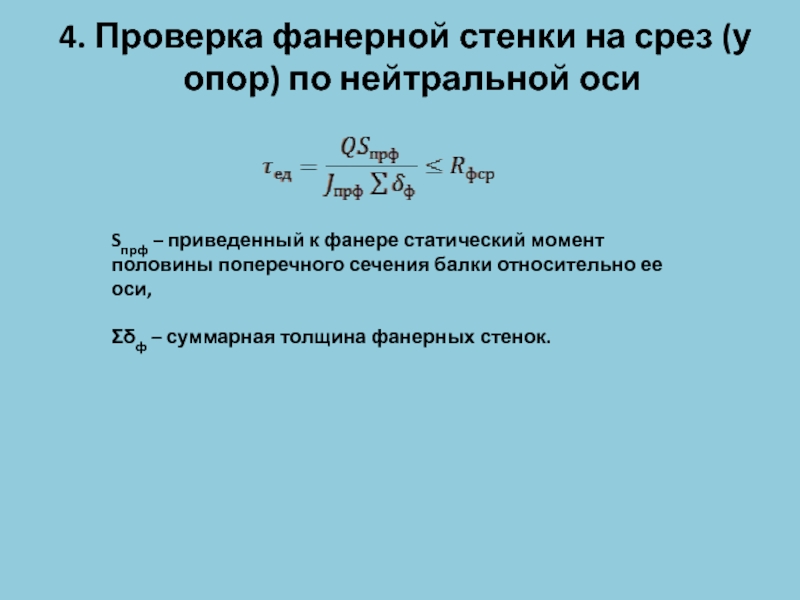 Слайд 57 4. Проверка фанерной стенки на срез (у опор) по