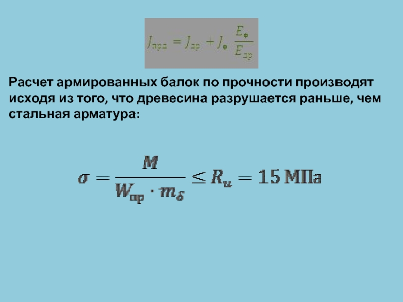 Слайд 36Расчет армированных балок по прочности производят исходя из того, что