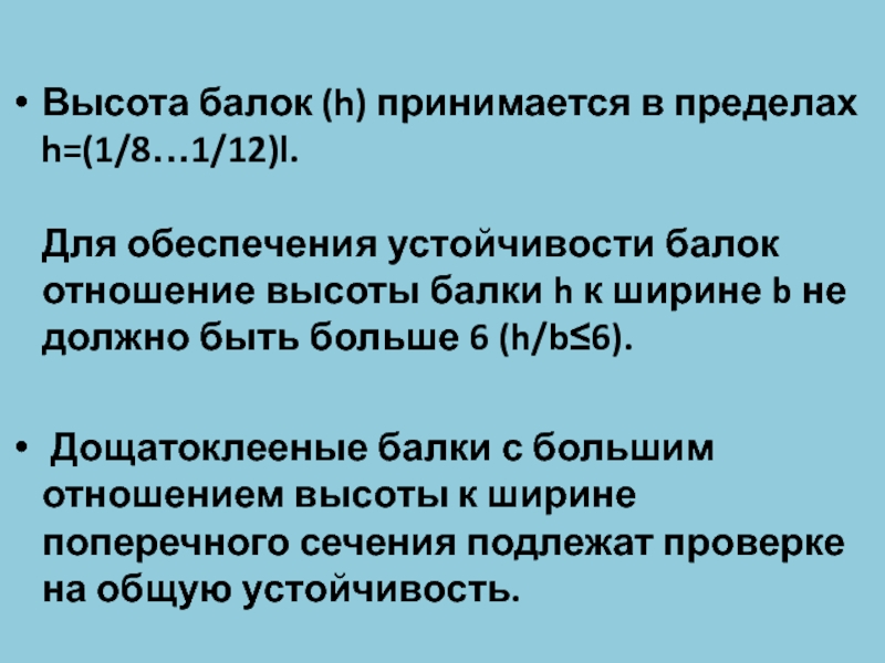Слайд 13Высота балок (h) принимается в пределах h=(1/8…1/12)l.