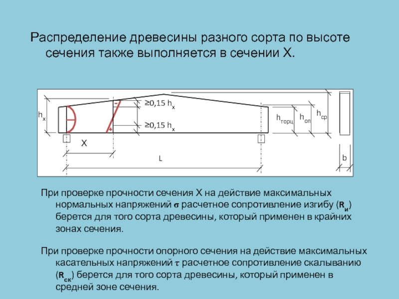 Слайд 26Распределение древесины разного сорта по высоте сечения также выполняется в