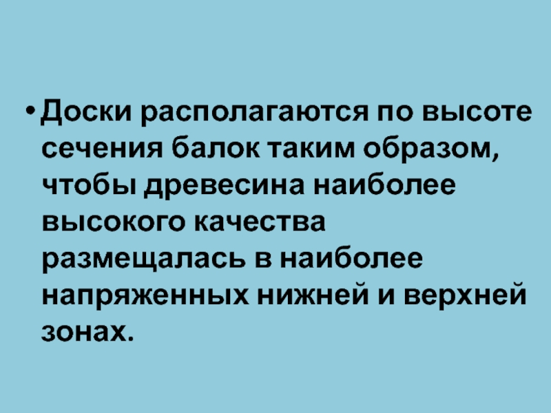 Слайд 14Доски располагаются по высоте сечения балок таким образом, чтобы древесина