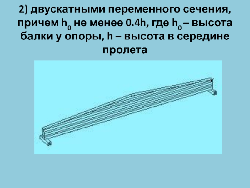 Слайд 72) двускатными переменного сечения, причем h0 не менее 0.4h, где