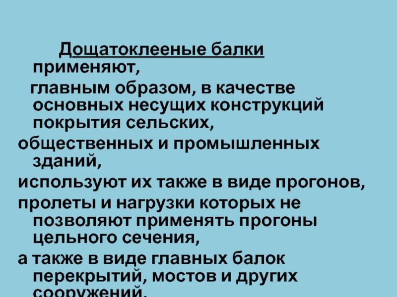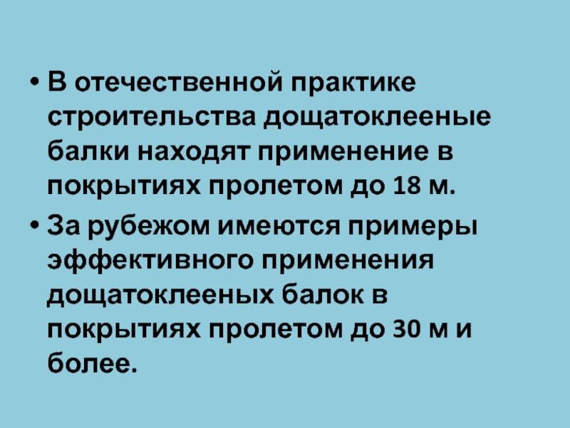 Слайд 5В отечественной практике строительства дощатоклееные балки находят применение в покрытиях