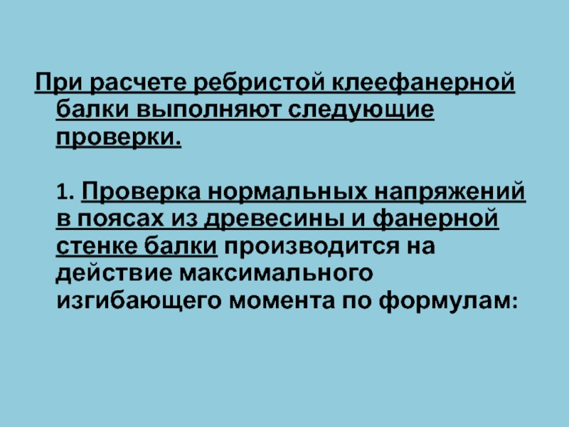 Слайд 51При расчете ребристой клеефанерной балки выполняют следующие проверки.