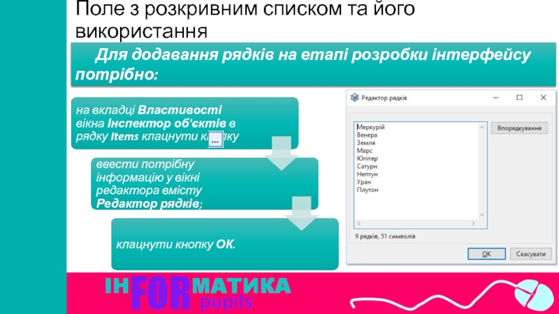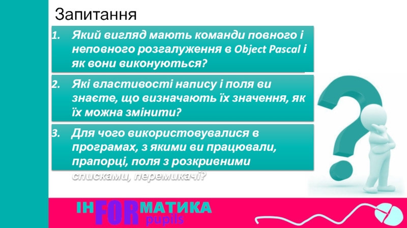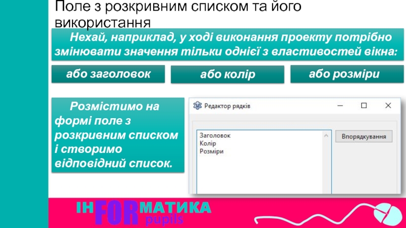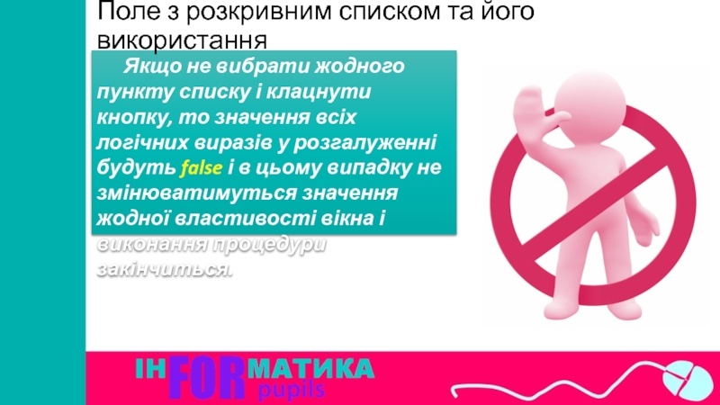 Розглянемо, як можна використати поле з розкривним списком у команді розгалуження.