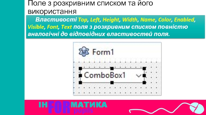 За потреби поле з розкривним списком можна перетягнути в будь-яке інше місце форми.