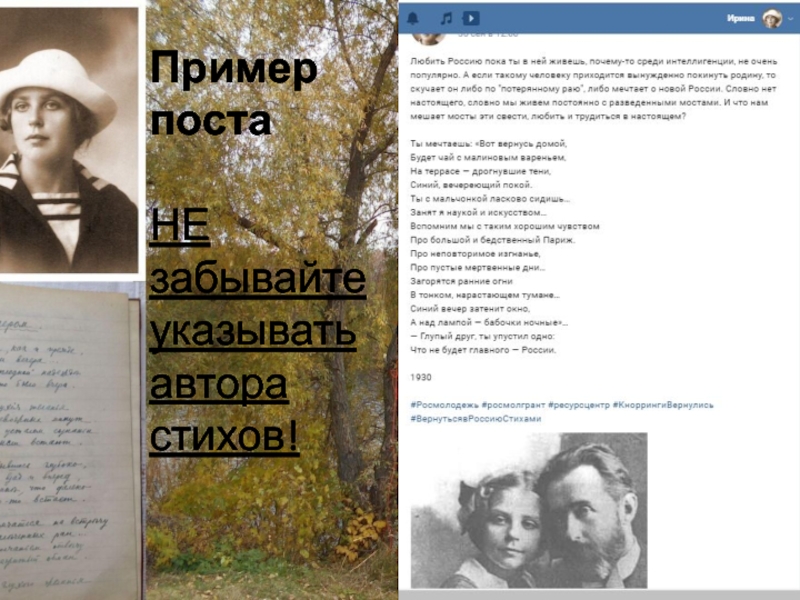 Слайд 8Пример поста НЕ забывайте указывать автора стихов!