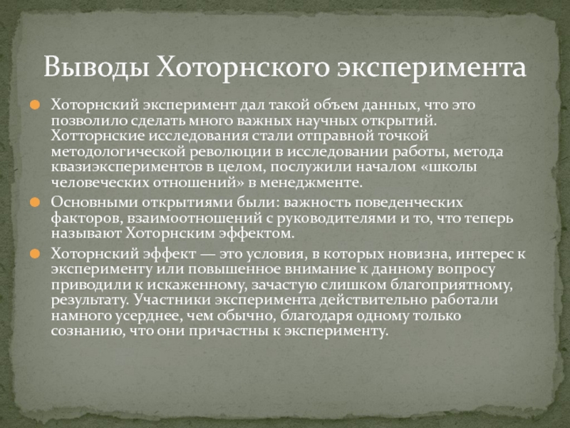 Сами хоторнские эксперименты рассматриваются в третьей – пятой главах.
