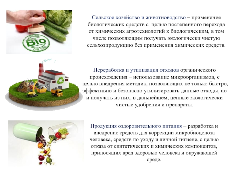 Слайд 3Сельское хозяйство и животноводство – применение биологических средств с целью