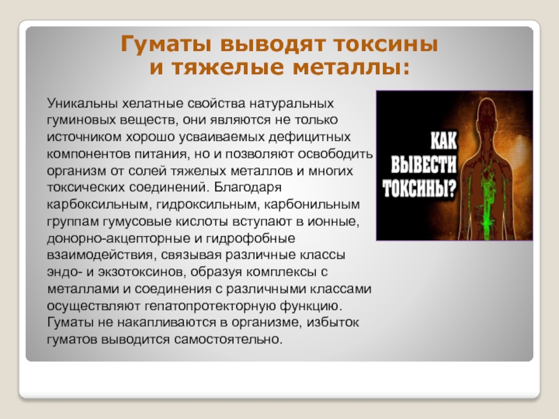 Слайд 43Гуматы выводят токсины