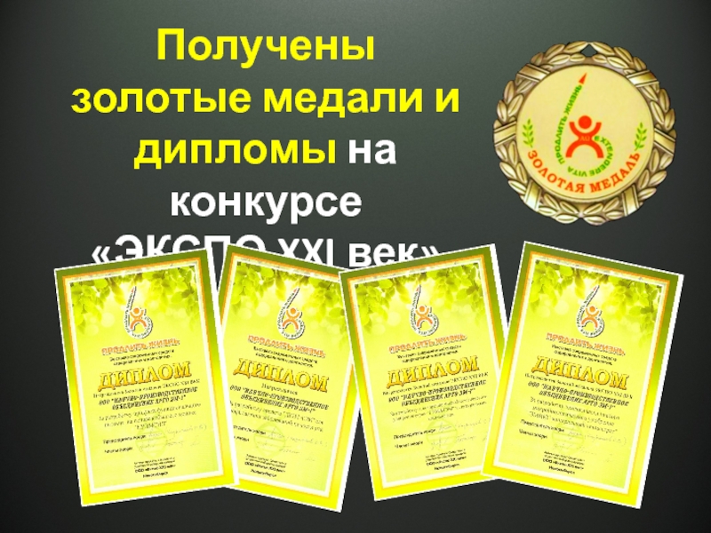Слайд 9Получены золотые медали и дипломы на конкурсе