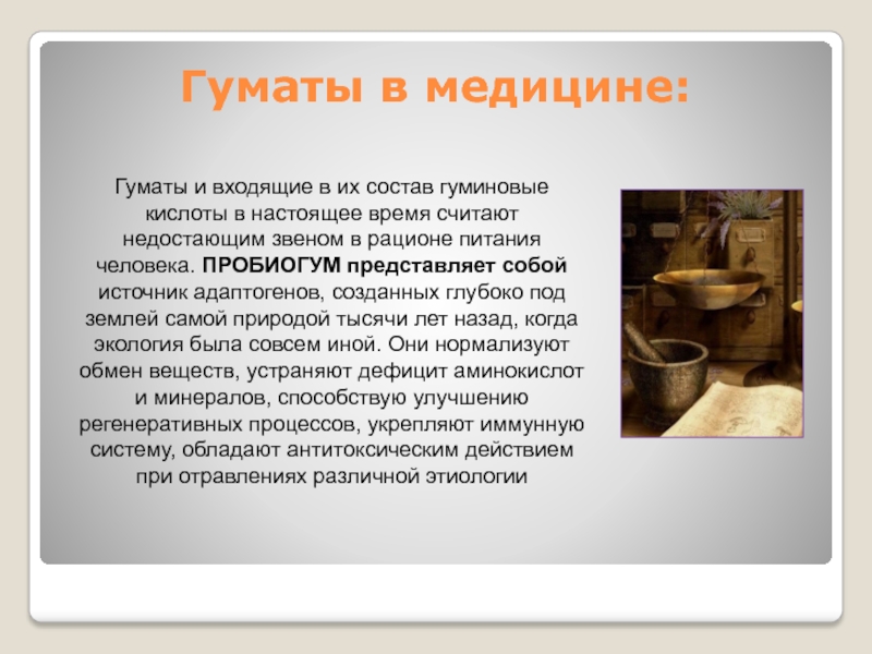 Слайд 42Гуматы в медицине: