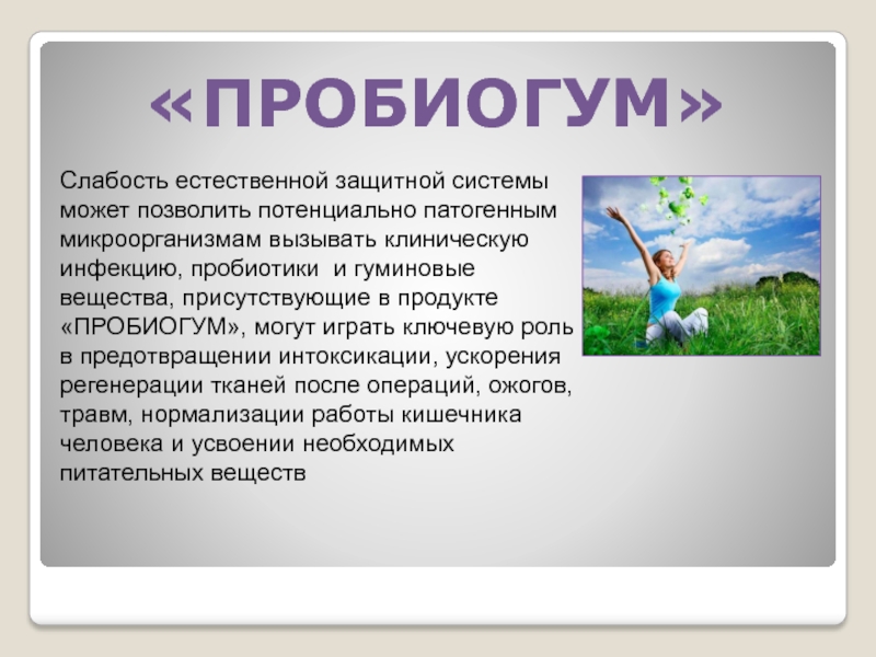 Слайд 47«Пробиогум» улучшает иммунитет и ускоряет заживление