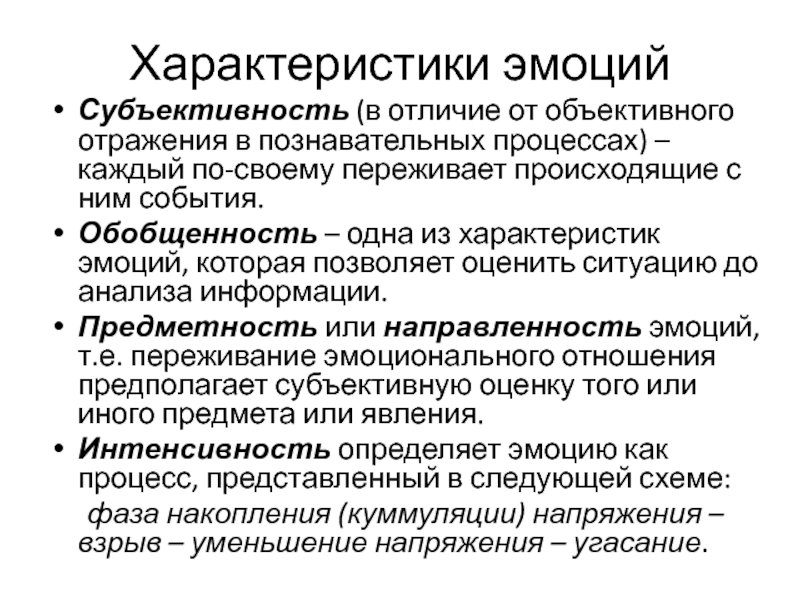 Предметность или направленность эмоций, т.е. переживание эмоционального отношения предполагает субъективную оценку того или иного предмета или явления.