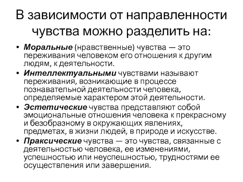 Слайд 11В зависимости от направленности чувства можно разделить на:
