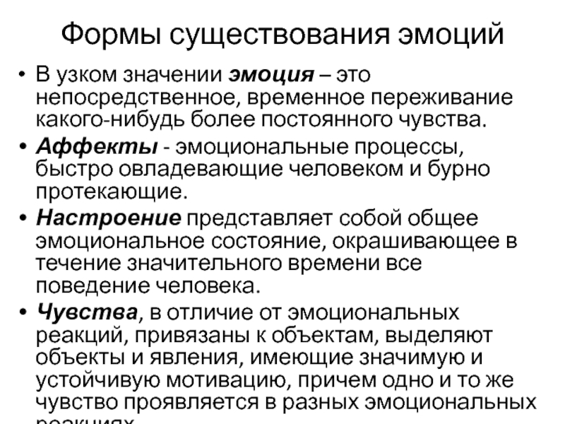 выделять эмоциональные реакции, чувства, настроение и аффект