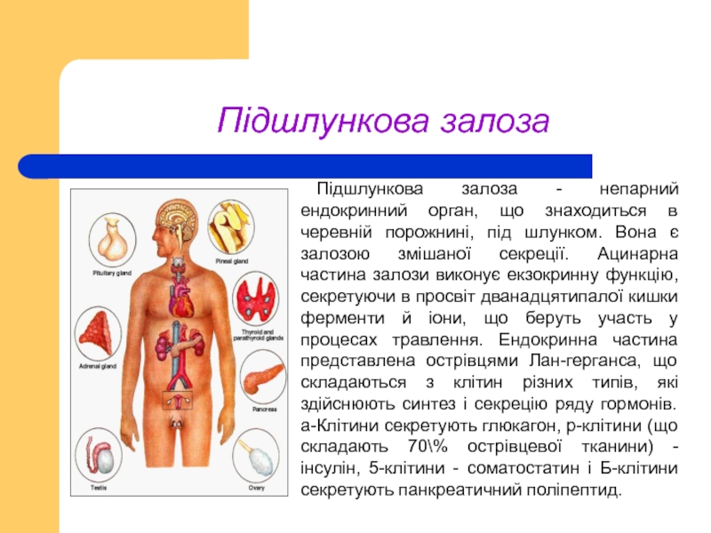 Підшлункова залоза - непарний ендокринний орган, що знаходиться в