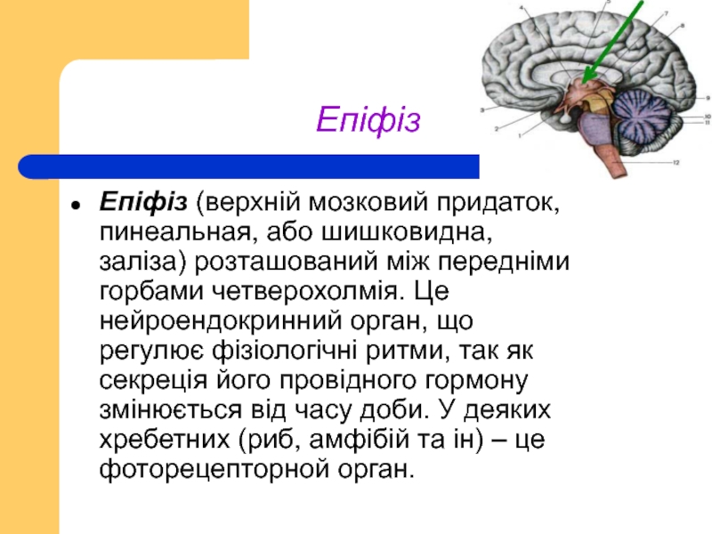 передніми горбами четверохолмія. Це нейроендокринний орган, що регулює фізіологічні ритми,