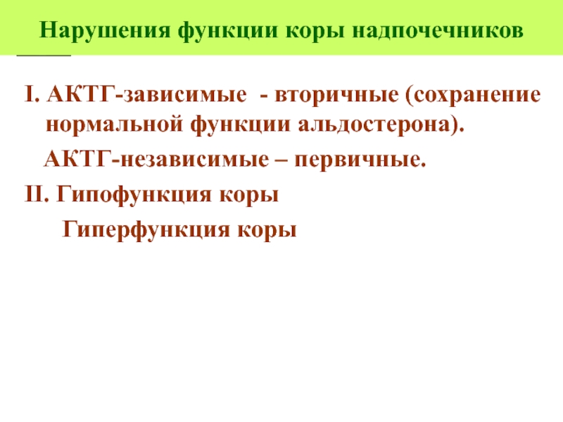 I. АКТГ-зависимые - вторичные (сохранение нормальной