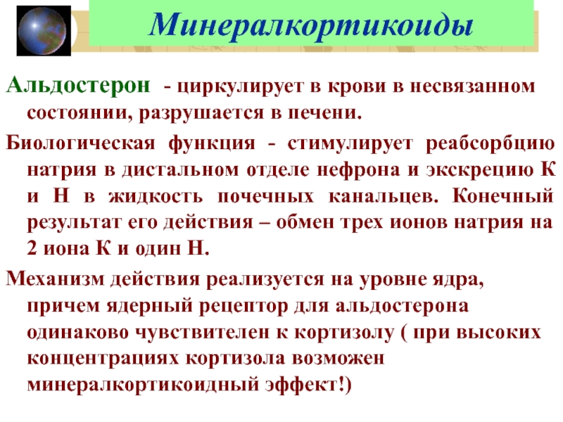 Биологическая функция - стимулирует реабсорбцию натрия в дистальном