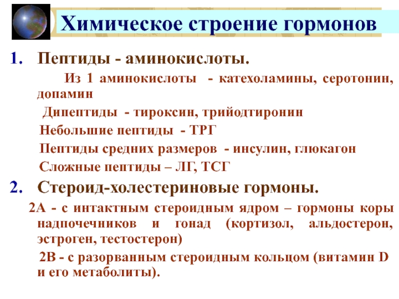 2А - с интактным стероидным ядром – гормоны коры надпочечников и гонад (кортизол, альдостерон, эстроген, тестостерон)